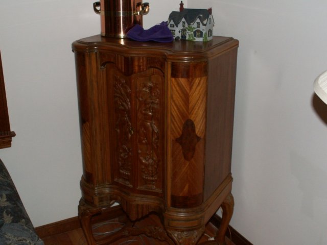 ![]() Didn't build this. It was painted white and we were ready to throw it out. Saw there was veneer under the paint, so I stripped the cabinet and my mother stripped the hand carved doors. |