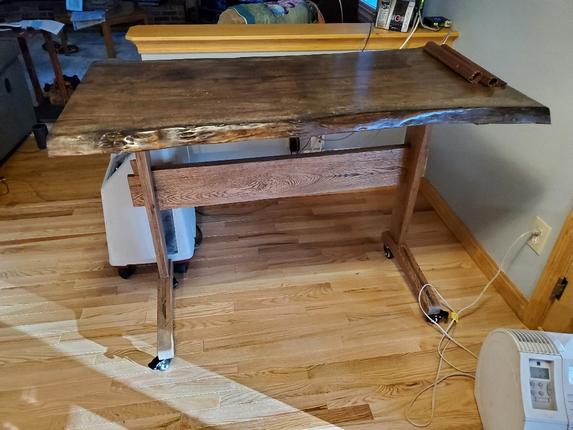 ![]() Got this live edgetable top and made a trestle bottom for it. On wheels so can either be a table or an island. |