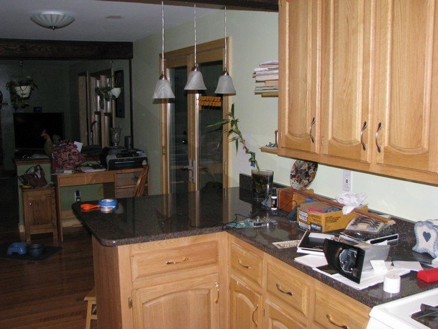 ![]() Time to redo the kitchen again. Adding a sun room and redoing the kitchen, The door to the mudroom was next to the fireplace. Moving the door allowed the TV to be in the corner |
