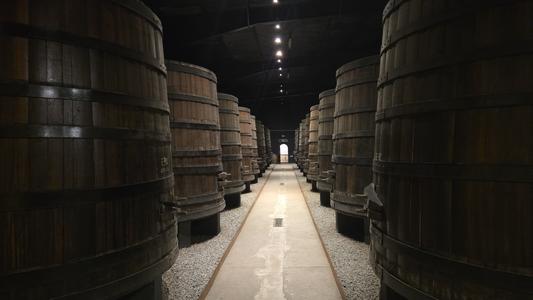 ![]() Old wine barrels shown in museum |