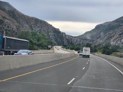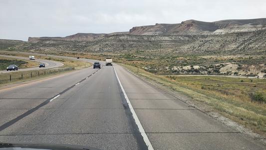 | It was a battle against the head winds, but we made it to our friends' house in Ogden. Had to gas up more often, MPG down around 6. Having a lovely visit, went out for dinner and ice cream. Geni: Long drive to Ogden Utah, took 9 hours. We left after 7 AM and got here around 5. The views along the way were so different from Massachusetts. When we were at one of the many gas stations we had to stop at, a woman from Montana said how she hates to drive through Wyoming because of the winds.