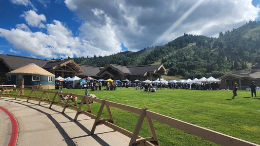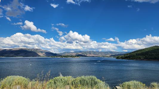 | A nice relaxing morning and then we went up to Snowbasin. It is a ski resort that was part of a previous winter olympics. They were having a concert there. After we stopped by te resevoir and relaxed for a while. Home and chatted and drank and ate!! Geni: Lovely day to walk around yet another mountain side. All the windy roads to get to our destination. Nice fair with food and music and vendors. |