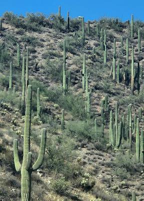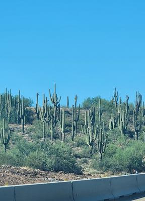 | We ventured down to the Phoenix / Scottsdale area today and had a lovely lunch with Shauna, Ben, and Abigail. Then we went to try out a new mattress for the camper. And back to the trailer. Geni: Drove to Scottsdale today. Miles and miles between cities and the temperature went up and up -- got to 102. Had such a nice time (and lunch) with my cousin Anita's son Ben, his wife Shauna and little Abigail. We noticed that as we drove, there were cacti along the highway, as well as lots of road work. Back to campground. Lovely day |