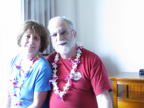 Well, we're off .... A quick trip to Denver and then on to Honolulu. Arrived arounf 2:30 their time ( which is 6 hours earlier ) got a lei at the airport! Ride from the airport to the hotel was not impressive, takes you through some of the mediocre areas of Honolulu. Arrived st the Pacific Beach hotel - very nice and right across from the beach. Geni was in heaven :) |