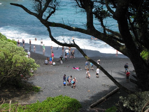 Today we did the road to Hana. We made it to hana and continued to the end, which was the 7 sacred pools and then headed back the way we came, which is the only way back. The road to Hana goes through a rainforest and is narrow and windy. It has somthing like 600+ turns and 50+ one lane bridges each way. Made for a long day, almost like snowmobiling in southern New Hampshire going through the villages. Along the way we stopped on Keanae pennisula and saw the waves crashing into the lava rocks- impressive Geni: The road to Hana is a big tourist attraction. We were lucky that we weren't fogged or rained out and actually made it all the way. Along the way, the roads had so many turns and so many one way bridges and roads which were a bit nerve wracking. it is also a bit claustraphobic because it is the only road to get back and forth. We had a GPS tour guide who advised us along the way, and he remarked that if there was a way to make the road better, the road to Hana would not be such an attraction. We agreed, because when all is said and done, we weren't sure if it was worth it. But we were glad we did it! |