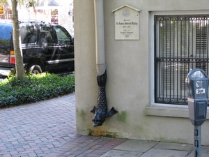 Shel: Geni is busy watcing Dancing with the Stars, so you are stuck with me! This campground sounds more impressive than it is, but it is close to Savannah.. Left the campground in Charleston this morning. Gassed up, gas is only about 3.25 per gallon around here - cheap - yeah right :) We stopped at Camping World on the way down. It seems my generator won't run the A/C on this camper, so I was looking for a 'hard start kit' which of course they didn't have it. So I asked them to move a vent fan from one vent to another, left the trailer and went into Savannah. When we returned they did not have time to do the move. We went to buy some other stuff there, but they didn't have that either - Just struck out there. While we were in Savannah, we went to the visitor's center and then on a 90 minute tour of the town. The tour really took 2 hours :) They showed us many of the highlights of town and the many squares in town, Geni: Historic Savannah is beautifulyt designed - over 20 squares (parks) surrounded by historic houses and buildings. Every neighborhood has their own lovely park - some with monuments or fountains. The people here have put alot of effort in keeping restoration a big concern. The tour guide really talked up Forrest Gump and Midnight in the Garden of Good and Evil which were both filmed in Savannah. Midnight actually was a book first, written about a murder that happened here. I had previously read it and seen the movie, but I should have reviewed it so I could recognize the places and people the guide was talking about. |