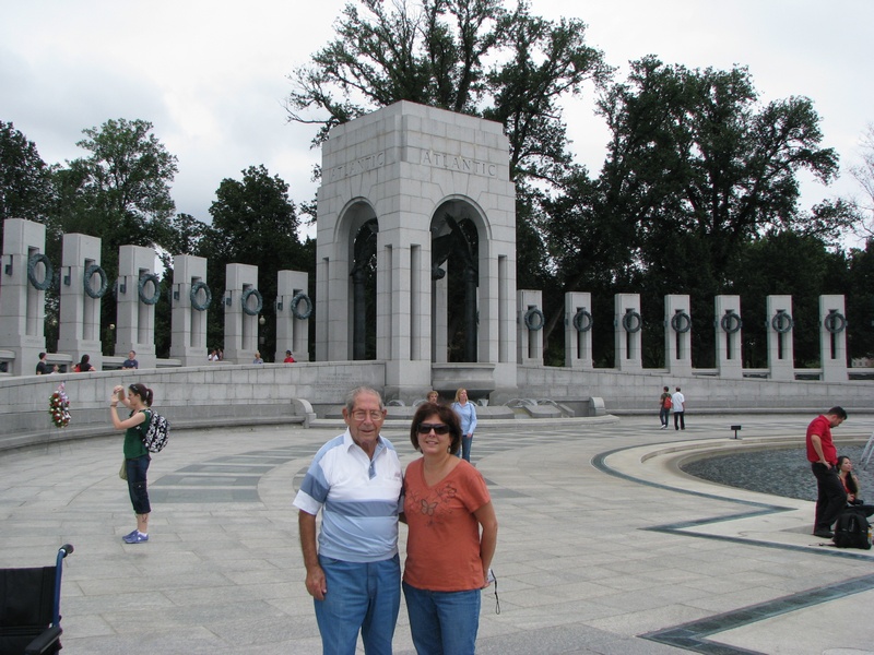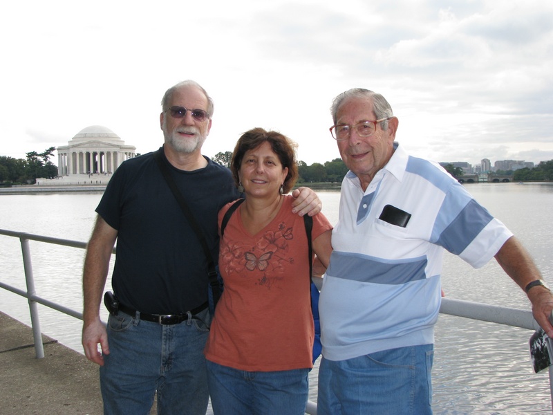 Got out the door this morning after 10:00 and went into Washington, DC to see as many memorials as possible in one day, and I think we did pretty well. Although the weather was really ominous, we were lucky that it never rained. However, the humidity was so thick that it was like walking through a sponge. Each memorial we went to was uniquely different. Each spot evoked different feelings, thoughts and emotions for everyone who visits them and that is what makes them so amazing. Dad wanted to go to the WWII Memorial and it was quite spectacular. We also saw the Vietnam Memorial, the Korean Memorial, the Martin Luther King Memorial, FDR Memorial, as well as the Lincoln and the Jefferson Memorial. Luckily we had a transport chair because dad would not have made it. As it was, we all took turns sitting and/or being wheeled in the chair so I think dad felt better about being wheeled around. At the end of the day, he was glad to have it!! We went to a great place, Timbuktu, near Baltimore, for delicious Maryland crab cakes for dinner. We are all exhausted at day's end. DOUBLE CLICK ON PICTURE FOR LARGER PICTURE |