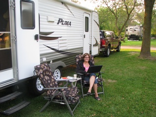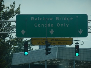 | We left Westford at 7:15 this morning and arrived at the campground at a little after 4:00. We made great timing until we got to the border where there was a toll and then customs. That took us about half an hour to queue through! We went to the campsite which was very nice. We did notice on our way out of the campsite that there were a few shady establishments across the highway - maybe strip joints or "massage parlors". Maybe not the best side of town, but you wouldn't realize it from where we are. We took a dry run this evening and saw the falls at night. Tomorrow we will check out the sights. We're tired! | |||
