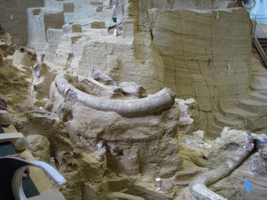 Today we focused on rock formations and fossils. We went to the Jewel Caves however, they were all booked, so we drove over to Hot Springs and went to the Mammoth Site. This was exciting because it is the only spot in America where the bones are in-situ (left as is). It was a sink hole where the animals entered the water but were unable to get out because of slippery sides. It was uncovered when developers were going to build on the land. They actually built a building around the spot and archeologists work at the site within the building. We walked around a platform where the tour guide stopped at various spots to explain whose bones we were viewing. Then we went to the Wind Cave National Park and had a wonderful ranger take us 250 feet down in this cave. It has hundreds of little tunnels that make it the fourth longest cave in the world. The entrance is a little hole that the wind blows in or out of. The hole is too small for us to go through, so we took an elevator down and to the tour. We walked through narrow passages in lowly lit passageways. She said that many of the passageways curve around and come out into larger spaces. This ranger had an interest as a young woman in TN and came back years later. She explores many of the tunnels with others and gives tours. We overheard another young ranger say she majored in meteorology and climate and wants to get a full time job as a ranger. What interesting lives they must lead! Driving home just took forever. You can't get "here" from "there". Pretty much no side streets and again, lots of prairie land with nothing but occasional cattle or a farm house on it. It's frustrating to have to circle around, but at least there is no traffic. |