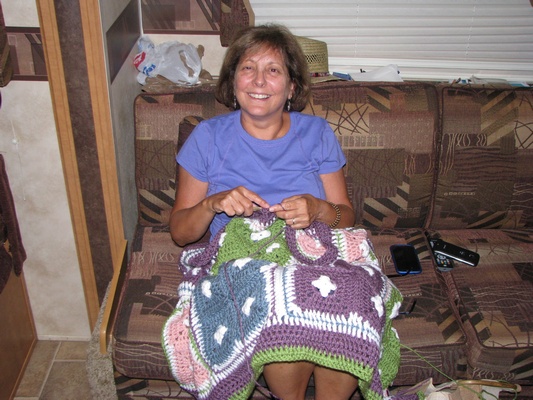 Working on Hailey's blanket throughout the trip - almost done! |