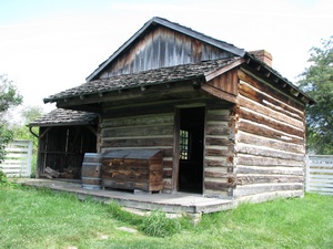 Side view of many buildings which were part of farmhouse |