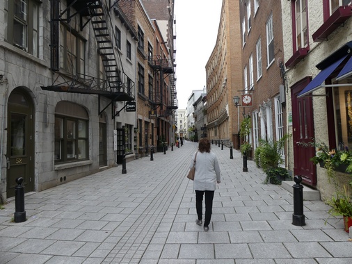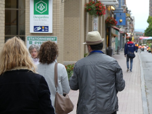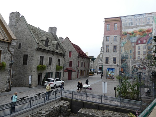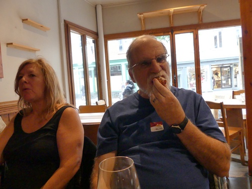 | Unusual for us, we had a lazy morning in the camper and then went to Old Quebec City for a food walking tour. It took us an hour to find a parking spot as we drove around the city. It might have taken a little less time, but we were looking for an outdoor spot since we had the truck. As it turns out, it only cost $15 (less as US money) to park for almost 7 hours. The food tour was a lot of fun. We visited a few different restaurants and sampled some wines and food for during a 2 1/2 hour walking tour. The tour guy, Simon, was entertaining and the people in our group were interesting -- all from U.S. We ended up eating dinner with a couple from New Jersey at a restaurant recommended by our guide. It was a cold, windy day, but luckily we were dressed for it. | |||