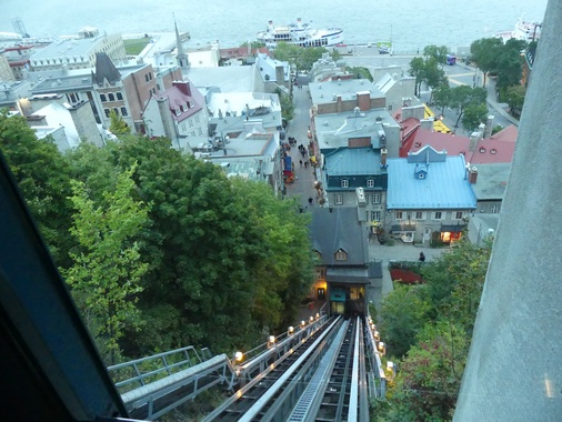 Finally got to ride the Funiculaire (like an elevator, but at an angle) down to lower level (instead of walking or taking the stairs) |