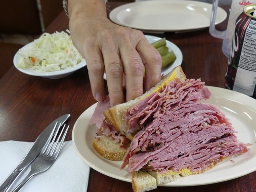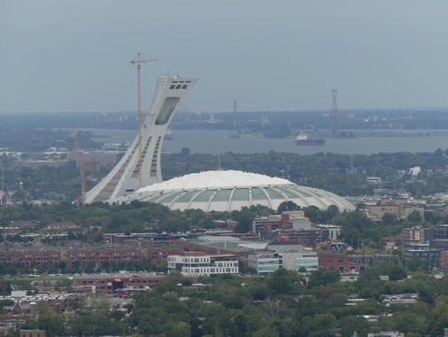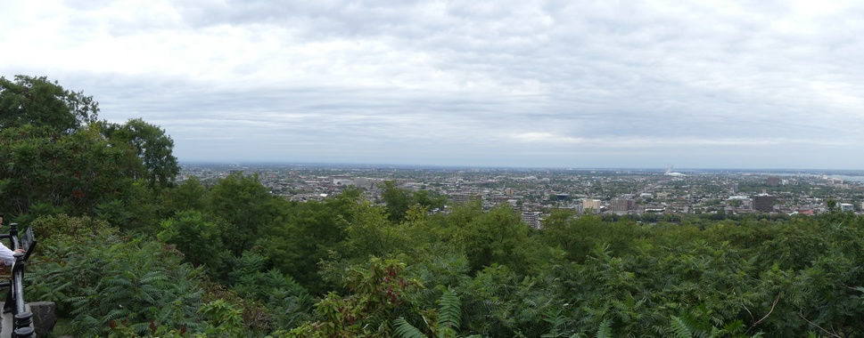 Went to Montreal to visit Shel's friends. Decided to go into the city to see what we could see, but our heart wasn't in it. Really I wanted Shel to try a smoked meat sandwich, which is better than corned beef or pastrami. And, we did find a good place to eat. As our friends said. . .Quebec City is a tourist place and Montreal is a city, and that was true. Didn't put much effort into sightseeing. Just walked around, and interestingly, it took us the whole time to finally find the tourist information center. This panaorama picture is of Montreal - taken at a lookout on Mont Royal |