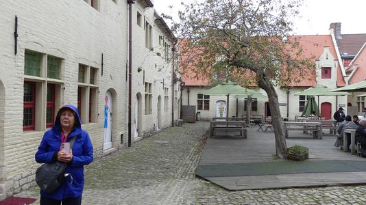 | Geni: We took a bus to Ghent on our way to Bruges. Ghent is known as the "Jewel of Flanders." The Treaty of Ghent was signed here in 1814 to end War of 1812. In the St. Bavo's Cathedral is the famous painting Adoration of the Mystic Lamb, which we got to see. It was originally stolen by the Nazis and was recovered by the Americans (The movie, The Monument Men, depicts the story). Many of the buildings in this town date from medieval times. |