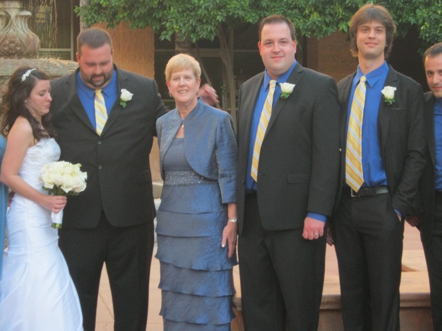 Ben and Shauna's wedding today. (Really, it was yesterday - saturday - but I stayed up much too late and didn't get to write this)! We got the camper to the hotel parking lot in the nick of time! As we were pulling onto the street before the hotel parking lot, a policeman was putting cones up to block the street. There was a bike event that was going through the middle of town and no one warned us about it. The policeman was not happy about moving the cones, but he relented when I asked him how we should we get the camper to the lot. Seemed like moments later, and the bikes were riding through the streets. We were very lucky. The wedding was so lovely and the bride and groom were really happy! The wedding was in the courtyard and later the relatives were able to sit out there and to catch up when the music got too loud. The younger crowd stayed in and danced and then went out on the town, which was just the next street over. Here are just a few pics and I'll put the rest in an album for the website. We got to sleep in a bed for the first time in a month!!