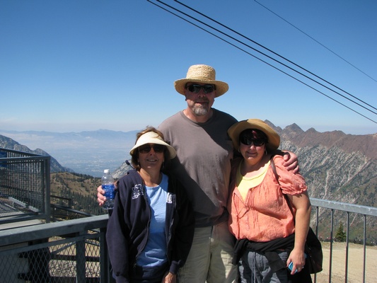 Shel: Another great day, met up with Dan and Michelle for Breakfast, a quick tour of SLC and then up to Snow Basin for Octoberfest! Took the tram up to the top of the mountain - view was spectacular and I can't believe that people ski down from the top. Geni: So nice of Dan and Michelle to bring us up to Snow Basin where they were having an Octoberfest which lasts from now until mid-october! Took a tram ride up to 11,000 feet. Overcast skies, but that didn't dampen the day. There are so many places in this area for skiing, mountain biking and hiking. We took a drive by of Salt Lake City on our way to the mountains. All the buildings had beautiful rooms to see, but we didn't want to spend time touring them. This is a panoramic view from the top of Hidden Peak |
