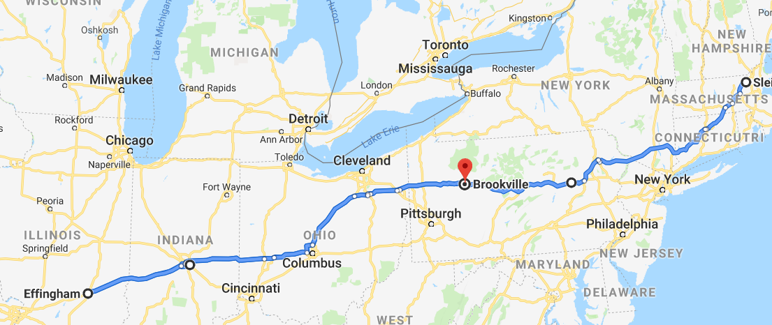 | We woke up in: | Brookville, PA | We're going to sleep in: | Effingham, Il |