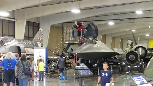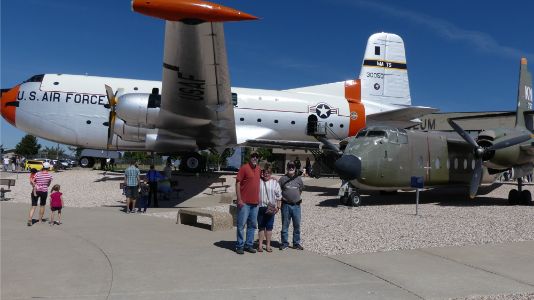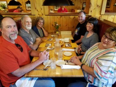 Had a very nice relaxing day. After Dan had a Saturday work concall, we went for a nice walk in the pahk. Then traveled down to Hill AFB for their open house. There were a lot of planes open so you could look into the cockpit. We went to lunch at a Cafe Rio and had just a salad ( yeah right). Relaxed at the campsite for a while and then met up with Robert and Debbie and went for a very nice dinner. I had a Bison steak! Geni: We are having a nice time hanging with Dan (Shel's former work buddy) and Michele. Got to an open house at an air force base and were able to see all different kinds of planes that were flown from the early Wright brothers to war planes. We were able to see up close where the pilots and gunners sat as well as cockpits with all the controls. It is all so overwhelming and awe inspiring to view it all. Went to this place, Cafe Rio, I had heard about (mexican) and we all got salads which were too big to finish. We had reservations to meet Robert (also work friend) and his wife for dinner at a popular restaurant. Really too much food!! |