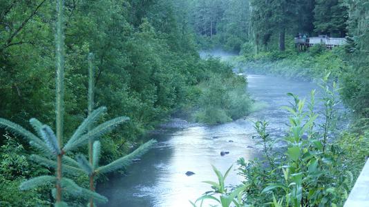This is small stream with fish. The bears were supposed to come out of the woods. We saw pictures that showed they actually did that |