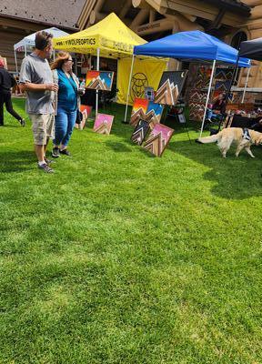 | A nice relaxing morning and then we went up to Snowbasin. It is a ski resort that was part of a previous winter olympics. They were having a concert there. After we stopped by te resevoir and relaxed for a while. Home and chatted and drank and ate!! Geni: Lovely day to walk around yet another mountain side. All the windy roads to get to our destination. Nice fair with food and music and vendors. |