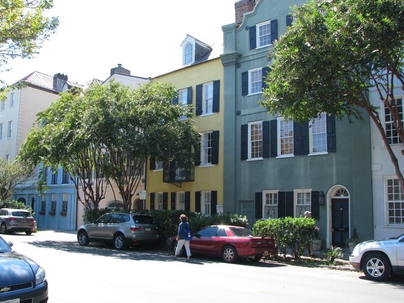 We are in a really nice campground but there is a train that runs nearby and we did hear it at 4 A.M.Surprisingly, our alarm went off just before the train went by, so we are trying the campground again tonight to see if we will wake up to another 4 AM train. Went to Charleston today and walked around the town.Shel was using his gps as we walked and we ended up walking over 10 miles today. We walked along the waterfront, which had some nice fountains thern over to the Slave Market, which was closed. The Market, where the slaves were sold from the ships, is on one of the oldest streets of the city as the street was still cobblestoned. I really wanted to see that. We walked through two house tours- the Nathanial Russell house which had a winding spiral staircase and many rooms filled with period furniture. It was interesting to walk through, however, after we scurried over to the last of the day's viewing of the Aiken-Rhett building, I found what I wanted to see. It was called an urban plantation house as it had lots of rooms and a stable area, slave quarters and a beautiful sprawling porch. That was a self guiding audio tour so it really seemed like you were feeling the history of the place. The house has not been restored, so the furniture and everything in it is original, but you can see all the years' delapidation of what once was. Unfortunately, the only place Shel wanted to see --- the Hunley submarine exhibit -- was only a weekend tour, so we missed it!! Evidently, I didn't hear him mention when he mumblled early in the day that it was only a weekend tour. We didn't get out of the A-R house until 5:00 when it was too late. I never heard him say that and Ihad planned tomorrow around the Hunley, not knowing it wasn't available, so I did feel terrible, but he doesn't seem to mind! Missed our WalMart stopovers, so we stopped to get a couple of things and went back to the camper to relax. We had had a good lunch -- lots of shrimp!! No mosquitoes here but I am still itchin' Shels version; We got up and went into Charleston finally finding the visitors center. The first problem of the day was the ducks in the campground didn't want to get out of our way. The only parking was in a prking garage with 6'10" clearance and my truck requires 6'. We ducked under every beam :) Then Geni made me walk over ten miles. It seems like the first mile was all in the market area. At least the lunch was good. So it wasn't enough that we walked all that way in town, we had to stop at Walmart and Geni dragged me all over the store. Wine, cheese, crackers and pistachios for dinner! We have pumkin ice cream for dessert.
