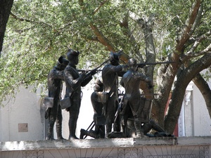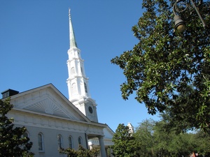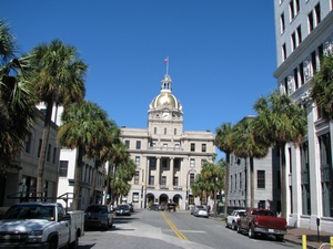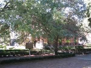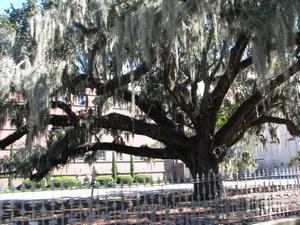Shel: Geni is busy watcing Dancing with the Stars, so you are stuck with me! This campground sounds more impressive than it is, but it is close to Savannah.. Left the campground in Charleston this morning. Gassed up, gas is only about 3.25 per gallon around here - cheap - yeah right :) We stopped at Camping World on the way down. It seems my generator won't run the A/C on this camper, so I was looking for a 'hard start kit' which of course they didn't have it. So I asked them to move a vent fan from one vent to another, left the trailer and went into Savannah. When we returned they did not have time to do the move. We went to buy some other stuff there, but they didn't have that either - Just struck out there. While we were in Savannah, we went to the visitor's center and then on a 90 minute tour of the town. The tour really took 2 hours :) They showed us many of the highlights of town and the many squares in town, Geni: Historic Savannah is beautifulyt designed - over 20 squares (parks) surrounded by historic houses and buildings. Every neighborhood has their own lovely park - some with monuments or fountains. The people here have put alot of effort in keeping restoration a big concern. The tour guide really talked up Forrest Gump and Midnight in the Garden of Good and Evil which were both filmed in Savannah. Midnight actually was a book first, written about a murder that happened here. I had previously read it and seen the movie, but I should have reviewed it so I could recognize the places and people the guide was talking about. |