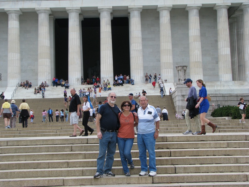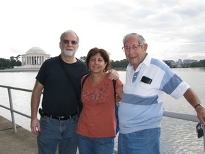 Got out the door this morning after 10:00 and went into Washington, DC to see as many memorials as possible in one day, and I think we did pretty well. Although the weather was really ominous, we were lucky that it never rained. However, the humidity was so thick that it was like walking through a sponge. Each memorial we went to was uniquely different. Each spot evoked different feelings, thoughts and emotions for everyone who visits them and that is what makes them so amazing. Dad wanted to go to the WWII Memorial and it was quite spectacular. We also saw the Vietnam Memorial, the Korean Memorial, the Martin Luther King Memorial, FDR Memorial, as well as the Lincoln and the Jefferson Memorial. Luckily we had a transport chair because dad would not have made it. As it was, we all took turns sitting and/or being wheeled in the chair so I think dad felt better about being wheeled around. At the end of the day, he was glad to have it!! We went to a great place, Timbuktu, near Baltimore, for delicious Maryland crab cakes for dinner. We are all exhausted at day's end. DOUBLE CLICK ON PICTURE FOR LARGER PICTURE |