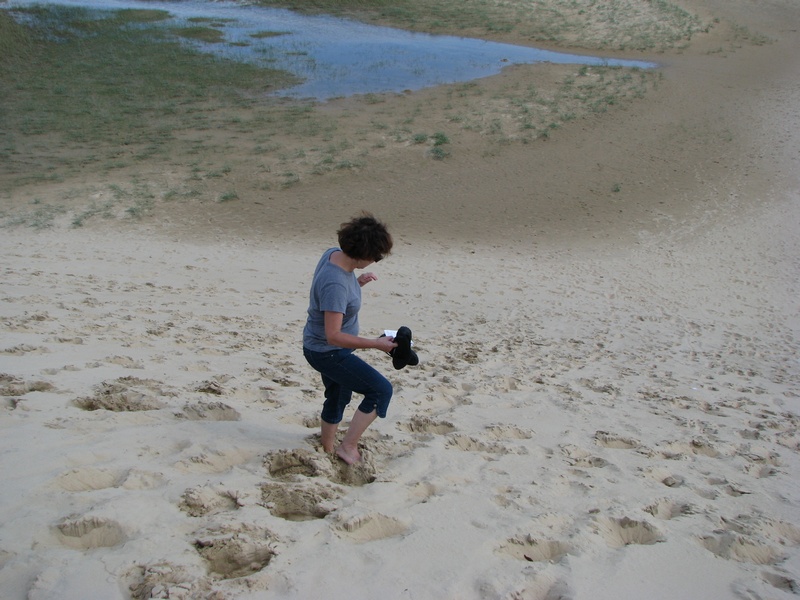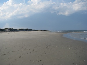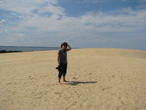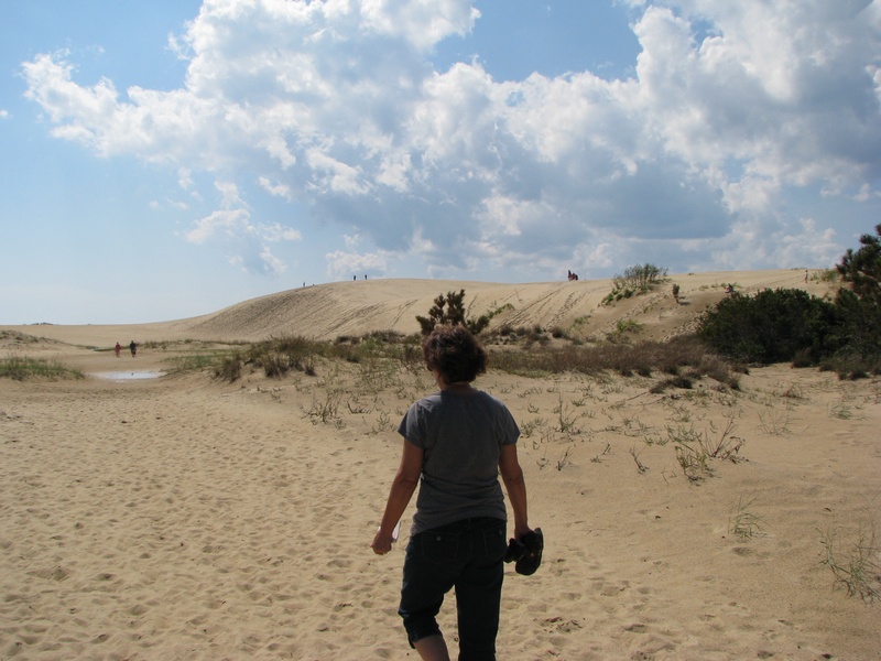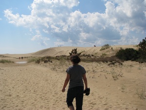 Between mosquitoes and Hurricaine Irene, the Outer Banks just were not as hospitable as they should have been. We missed out on going to Ocracoke Island because it was hard to get there from here and today the mosquitoes were swarming even during the day. We went to Fort Raleigh National Historic Site, but couldn't walk the area to see the original site of the "lost colony" because it was in the woods. We did see an interesting and informative movie about the history of the settlemen which led to the mystery of what happened to them. We left that area to walk around the downtown (Manteo) -- no woods, very few mosquitoes. The store owners were just getting back to business from Irene and just starting to reopen their stores. Earlier today we went to Jockey Ridge State Park, which has two of the highest sand dunes on the East Coast. They are more than 100 feet high and many hang gliders come here to take off. We also went back to the Wright Brothers Memorial to see what we missed yesterday. Lots of walking today. Leaving in the morning for Charleston, SC - sure hope they don't have mosquitoes. |