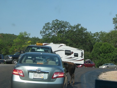 Today we focused on rock formations and fossils. We went to the Jewel Caves however, they were all booked, so we drove over to Hot Springs and went to the Mammoth Site. This was exciting because it is the only spot in America where the bones are in-situ (left as is). It was a sink hole where the animals entered the water but were unable to get out because of slippery sides. It was uncovered when developers were going to build on the land. They actually built a building around the spot and archeologists work at the site within the building. We walked around a platform where the tour guide stopped at various spots to explain whose bones we were viewing. Then we went to the Wind Cave National Park and had a wonderful ranger take us 250 feet down in this cave. It has hundreds of little tunnels that make it the fourth longest cave in the world. The entrance is a little hole that the wind blows in or out of. The hole is too small for us to go through, so we took an elevator down and to the tour. We walked through narrow passages in lowly lit passageways. She said that many of the passageways curve around and come out into larger spaces. This ranger had an interest as a young woman in TN and came back years later. She explores many of the tunnels with others and gives tours. We overheard another young ranger say she majored in meteorology and climate and wants to get a full time job as a ranger. What interesting lives they must lead! Driving home just took forever. You can't get "here" from "there". Pretty much no side streets and again, lots of prairie land with nothing but occasional cattle or a farm house on it. It's frustrating to have to circle around, but at least there is no traffic. |