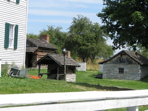 Side view of many buildings which were part of farmhouse |