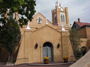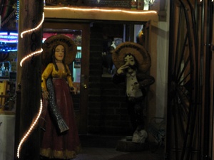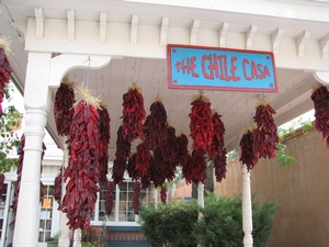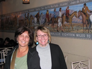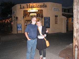 We met friends, Teresa and David (who used to live in Boston) for a mexican breakfast. It was a great breakfast and wonderful to catch up with Teresa and David who I haven't seen in a few years. They brought us over to Old Town in Alburquerque and Teresa explained how the Indians certify their jewelry and what is real and what isn't which I didn't know anything about. They suggested that we go to the Indian Pueblo Cultural Center nearby, where we saw alot of exhibits about the different Indian cultures and history. We also watched a video about pottery making which was really informative. They use a mixture of the red clay dirt and blue sand and just the right amount of water for the correct texture. It is molded by hand, and usually done by the women. It has traditionally been the men who do the painting and they use a very thin brush which is made from the yucca plant. To bake the pottery, they start the fire with cedar branches,but put pieces of srcap metal and dried cow manure over the pottery. They put dried horse manure over it to make it only smoke rather than burn. It all takes hours to do and they are not sure about the quality of the pieces are until they uncover each piece. No wonder the authentic pieces are so expensive! Teresa suggested a good mexican place for dinner and was able to join us. (David was working) We had a great meal and were glad to spend some extra time with Teresa. The most notable difference in the mexican food around here is that they serve a mexican popover that you can eat with honey. We forgot the name but it is something like sopifilla?!! Well, guess it's time to start heading home!!