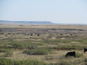 We got up this morning and went to the Petroglyph Monument park and walked up some short trails to see the symbols which were chiseled into the rocks by the early pueblo people as well as later by some spanish settlers. It is not known what the symbols mean as each group of people have their own interpretation and even they do not know the significance. It is unknown if it was just a place where "artists" used or whether it is something more spiritual. There was another sign saying do not disturb the rattlesnakes and that certainly rattled me. There were things moving around, but we only saw rabbits and a roadrunner type bird. We packed up the camper beforethe noon checkout time and headed toward TX. The land was pretty flat and open and we could see to the horizons. When we got to Amarillo, Walmart, it looked like a campground. There are at least 10 other campers here. We did our shopping at Walmarts, ate dinner and are finishing up the evening. It is central time now, so we went from 2 hours difference (mountain time - New Mexico) to 1 hour difference (central time) from MA. Whatever time it is, I'm tired!! We are just driving through the northern part of Texas, so should be moving quickly through it tomorrow.