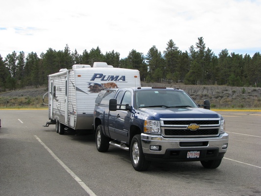 Shel: Drove 517 miles - mostly two lane with lots of hills. At the Berkshires in MA, the truck had no problem pulling the trailer over 60 mph in 4th gear, but out here it is down in 3rd gear doing about 45 mph on these hills. Geni: We both slept well last night. Train did drive on by, but it was just a midnight run that we heard. The drive to Glacier Park was boring and bloody long, especially last three hours. We drove down and then up roads as far as the eye could see only to reach the top and find another and then another of the same road.. .like groundhog day. So much unpopulated land, some with sporadic farms, some with only cattle, some with no cattle, no electricity, just land. Except for the beauty of seeing the sky meet the horizon, it got to be a little much. And, when we finally reached the park, it took another hour of windy roads to get to the west side where the campground is. I was really thankful that we found a site before dark and got settled in. Shel did an amazing job of driving for so long and having me as a passanger. Yay, we are finally here. |