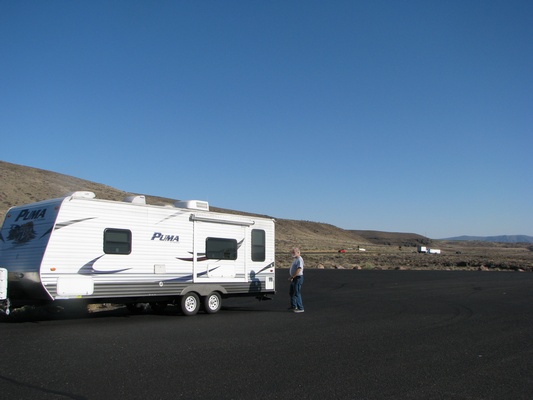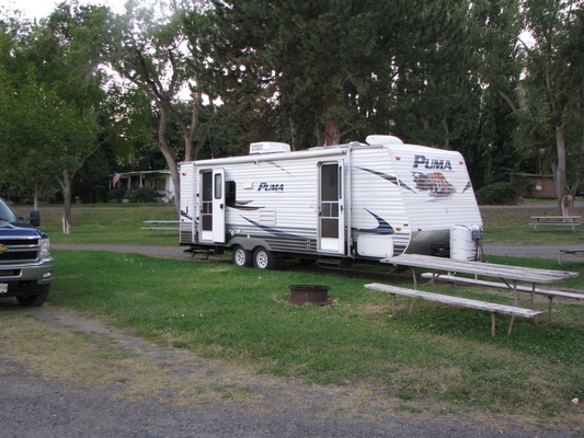 Shel: Nice ride today - must have had a great tail wind - flew right along. We had to go through two passes in Idaho. Washington (so far) has been pretty flat. Decided to stop a little early today. I think it is interesting that the central part of the state was sparsly populated, not as sparse as eastern Montana where towns were 70 miles apart! Funny how the people we were going to meet in Seattle are now in Las Vegas - are they trying to tell us something:) Actually we will get to see them on Sunday. Only got 421 miles in today. Geni: As we were leaving we saw some deer run across the road, however, we see deer in our backyard, so while it was exciting, it wasn't picture worthy. Also, I couldn't get the camera to work in time. Glacier National park was big on protecting yourself from grizzly bears. They suggested that hikers use the bear spray if they come across a bear and also stressed that people have been killed in the park. Although we did not go deep into any hiking sites, we never even saw a squirrel.. It seems that both Montana and Washington(with the exception of Spokane) are sparsely populated on the eastern part of their states. We drove by a few towns on our way to Washington, more than we had seen on the way to Glacier Park. It seems that most of America is farmland, not the highly populated cities that we are used to. Stopped at a scenic site that was the Columbia River and a sacred Indian spot. That led us to a campground that we are staying at tonight. Nice and quiet and not exepnsive for an overnighter. |