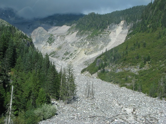 All rocks - maybe it is where a glacier made it's way down the mountain |