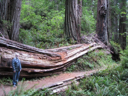 Shel: It seems like we never have cell service at the campgrounds and must upload the page the next day! This campground is no exception. Tomorrow we will start are trek toward Salt Lake City - I expect two travel days and we will have to go over two mountain ranges. Today we toured more of the sites around here. As you can see below, these trees are massive and tall - some up to 300'. They don't have a deep root system and it is amazing that they have kept standing for so long. They have some long windy narow dirt roads around here! Had a record today - put over 29 gallons of gas in at one fill-up :( Geni: Feels like Redwood is what the national parks used to be like before they paved the roads and added lodges and gift stores (tastefully done of course!). We drove down so many unpaved, bumpy, dusty roads in search of more sights to see. The trees didn't disappoint, but what they call coastal drives and scenic routes just didn't seem to come close to any of the other national parks. The only positive thing that happened was that they told us where the elk were and they actually were there! The day was overcast and kind of foggy and we didn't see the sun until around 3:30. I am in awe of all the people who tent either in solitude or with groups. They are really roughing it. Also, the cyclists who we have seen riding up the mountain roads. Today we talked to four cyclists from England who were riding from Canada to Mexico and they were staying in an RV. We are turning the camper eastwood tomorrow and heading toward home. . .with a few stops along the way. |