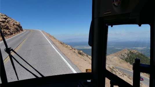 ![]() View of one the many hairpin turns coming up while on bus |